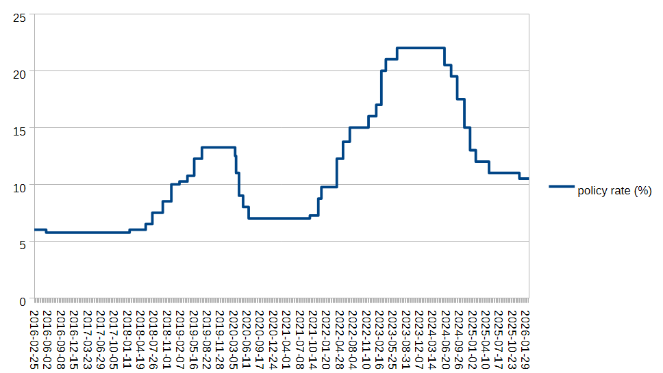 When I last wrote about monetary austerity (for the Monetary Policy Institute blog), the SBP had the policy rate almost at the peak of the post-Covid rate-hiking cycle. The monetary austerity regime has been dialed down, but remains painfully persistant. After a 50 bps reduction in the policy rate in December, the central bank’s monetary policy committee (MPC) chose not to change the rate on January 26. Business leaders were unhappy, again: according to the president of the Federation of Pakistan Chambers of Commerce and Industry (FPCCI), Arif Ikram Sheikh, businesses “had sought a reduction of 350 basis points to bring the policy rate to 7%, warning that high borrowing costs were exacerbating an already severe industrial crisis.”